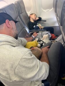 Ve vlaku jsem tu svoji obtíž ještě tak nějak zvládala, ale na letišti už mě bylo tak blbě, že jsem si tam lehla jak bezdomovec na lavičky a usnula. Nejhorší chvíle byla při vzletu letadla, od té doby už se to jakž takž dalo. Finální hodina v taxíku z letiště na ubytko už byla v pohodě, jen už nás všechny doháněla únava z téměř celonočního nespání. Mara se celou cestu velmi obstojně staral o chlapečky, abych to nějak ustála až do cíle. Po příletu jsme skočili do bazénu, pak hned do moře a šli nakoupit jídlo. Já ihned poté usnula a spala až do večera. V noci Tonda často vstával, že ho bolí uši, tak jsem hned googlila, kde je tu nemocnice, kam budeme asi muset vyrazit, jelikož trpí na záněty středního ucha. Díky Bohu se z toho vyspal a ráno už bylo dobře.