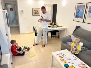 První ráno ve Španělsku máme bouřku, šílený déšť a celodopolední “zábavu” s dětmi na apartmánu. Po vymyšlení deseti her, u kterých udrželi pozornost průměrně tak šest minut, každý chtěl dělat něco jiného a každý mě k tomu potřeboval, jsem už v deset dopoledne ječela, že tohle nedám, že jsme měli zůstat doma a Čenda měl mazat do školky. Jestli takových dní bude víc, tak budu muset přizvat ke hrám svoji kamarádku Lexaurin (Musíte uznat, že to zní jako cool cizí jméno, např. Lexaurin Dubois). S Lexaurin bude hraní mnohem klidnější a uvolněnější.
