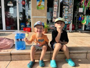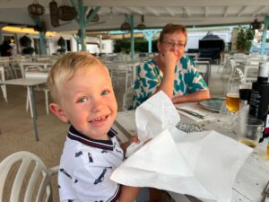 Jinak tu stravu jsem si tady představovala trochu jinak. Představovala jsem si saláty, mořské rybky, krevety, spoustu ovoce a čerstvé bagetky. Moje děti mají však o fajn obědě trochu jinou představu, takže tu funguje stejný režim jako doma. Polívky, špagety, kuře s bramborem, špagety, rizoto, špagety.