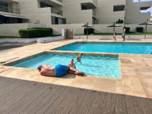 Nemá cenu psát blog každý den. Za prvé jsem příliš zaneprázdněná dlabáním děr v písku a za druhé se toho zas tak moc neděje. Pláž, bazén, vaření a sem tam stopem nakoupit. Španěláci jsou relativně opatrní a moc stopaře neberou. Naše druhá jízda byla se španělským dědou, který řídil obdobným způsobem jako Kačis, tedy mluvil a koukal u toho na nás a ne na vozovku. Jelikož anglicky uměl tak tři věty, radši nás přivezl až na místo určení, než aby nám vysvětloval, že bydlí asi půl kilometru od našeho cíle a máme to dojít. To jsme pochopili až záhy. Děda nás hodil až před dveře obchodu a vesele nám mával.
