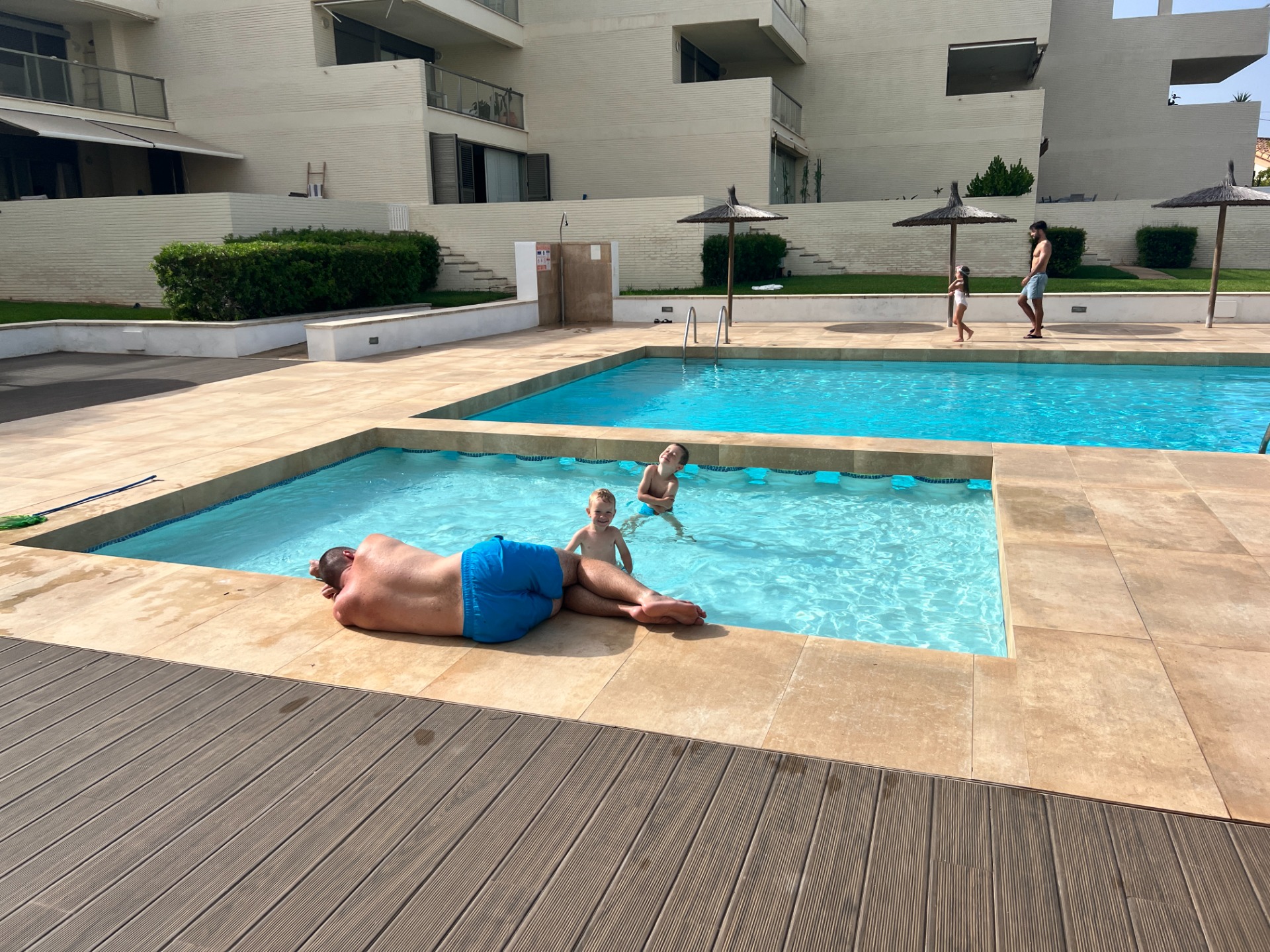 Ve vedlejším apartmánu bydlí španělský tatínek našeho věku. Má asi šestiletou dceru a postavu jako Adonis. Mara se dal slyšet, že do roka bude vypadat jako on. No…teším se.