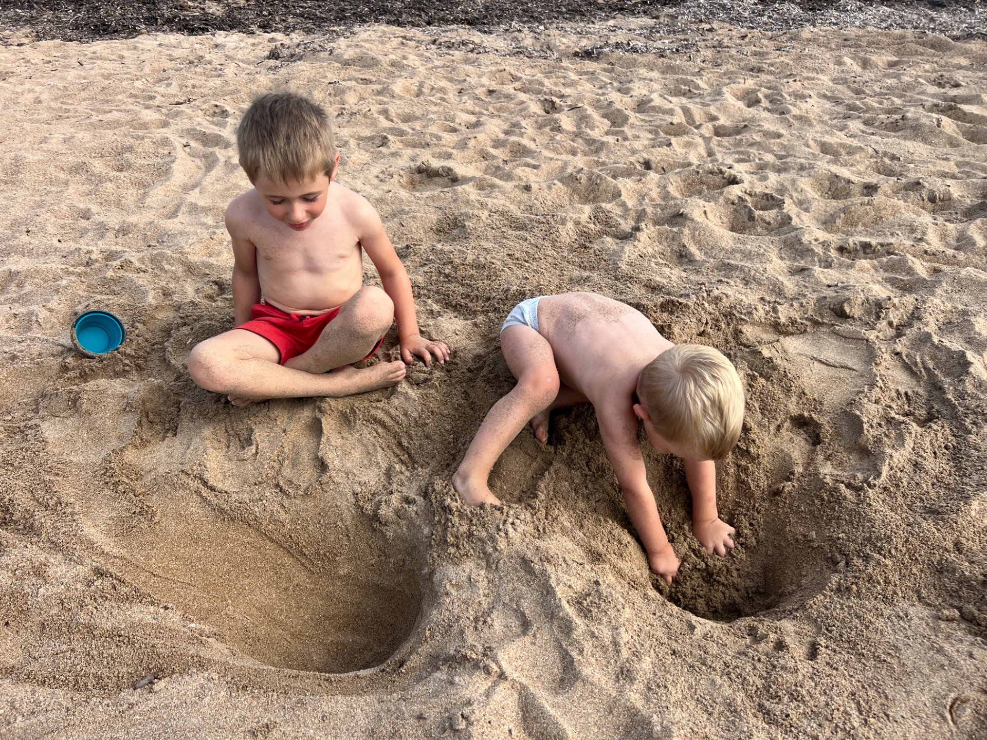 Moře je krásně teplé a klidné, ale bohužel jsou zde všudypřítomné řasy. Na pláži, kde jsou vyplavené, jsem si na ně už zvykla, ale ve vodě, když se mi omotají kolem nohy, na to se zvyknout nedá. Vždy rychle plavu pryč, abych se nedotýkala dna. Vím, že jsou to jen blbé kytky, ale pokud se do nich někdy jedno z mých dětí zamotá, nevím nevím, kdo ho bude zachraňovat.