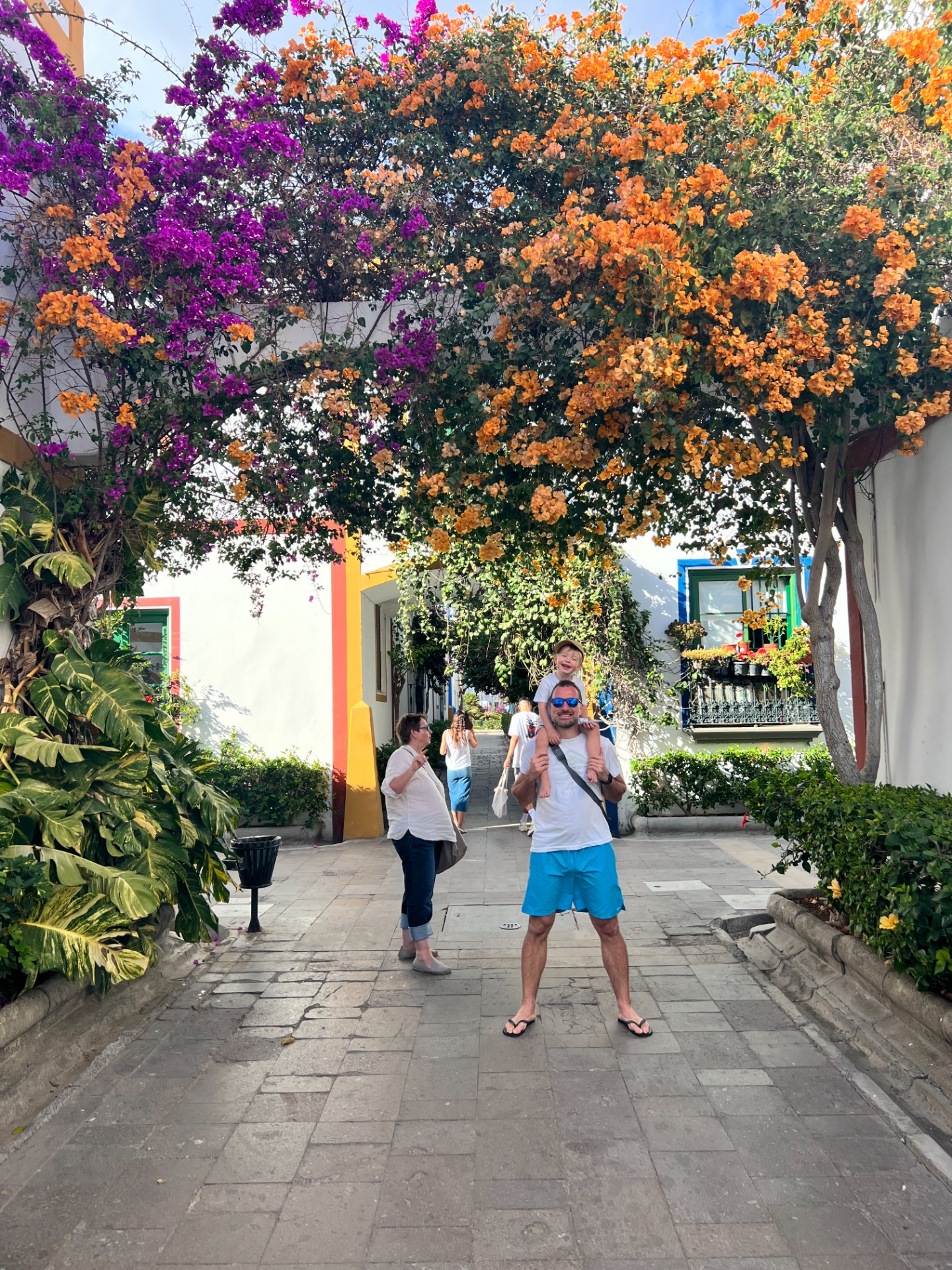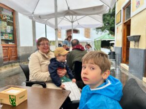 Ráno bylo pěkně i tady v Las Palmas, tak nám to zvedlo náladu. Nasedli jsme do auta a vyrazili do vnitrozemí do města Teror, kde jsou v neděli tradiční trhy. Už z dálky jsme viděli hrozivý šedý mrak snášející se nad tímto horským městem. Po příjezdu jsme oblékli všechno oblečení, které s sebou máme a vyrazili do centra. Asi po půl hodině procházení obchodů a nekonečného Čeňkova fňukání se spustil šílený liják. Seděli jsme venku na zahrádce v jedné sympatické místní kavárně, kde mi fajnová babička poradila, že si mám dát cortado pequeňo, což je jejich místní způsob přípravy kávy. Kafe bylo pro mámu a ta si ho velmi pochvalovala. To byla asi nejsvětlejší chvilka z celého dopoledne, protože pak už jen šíleně pršelo. Jako musím říct, že i minule, když jsme tu byli, chlapečci dost otravovali, ale jelikož svítilo slunce, bylo teplo, já mohla v tu dobu ještě jíst, co jsem chtěla a tedy i ochutnat vše na trzích, tak se tato drobná neduha dala nějak přežít. Každopádně při této návštěvě, kdy jsem byla promočená, zmrzlá, hladová a ještě poslouchala, že si Čeněk nutně potřebuje koupit pistoli nebo pokladničku (kterou už si koupil před dvěma dny, ale neměl ji s sebou) , zvládala jsem to o poznání méně mile.