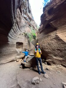 Poslední zastávka byla již jednou navštívený kaňon, ale líbil se nám natolik, abychom tam zajeli ještě jednou. Tonda si odřel nohu na nártu a odmítal chodit v botech, takže Mara ho nesl celou dobu na zádech. Hrdinně to zvládl a ani nepípnul. To byl asi revanš za to odžduchnutí od hradu.