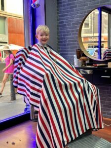 Kluky jsme tu nechali znova ostříhat, protože pánské kadeřnictví je tu na každém rohu, chtějí za to rozumné peníze a na rozdíl od brněnských dětských kadeřnic jejich střih je kvalitní a každý vlas má svoje místo. Naposledy Čendu jedna kadeřnice v Brně tak opižlala, že to děda nevydržel a jal se mu to sám zarovnávat. Tak špatné to bylo.