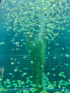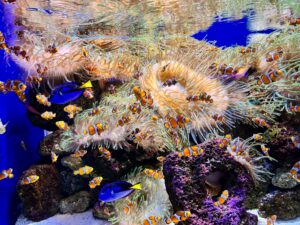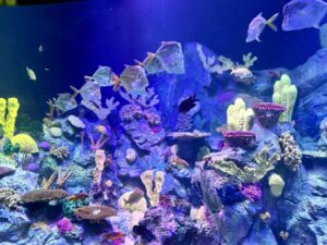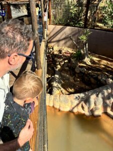 Pak nastala chvíle, kdy vzal Mara oba kluky na záchod a já měla chvilku na to se podívat na několik akvárií. A tam mi došlo, že se vlastně celý den vůbec nedívám na zvířata, ale jen na svoje děti, jak se koukají na zvířata (což je ta lepší varianta), anebo se snaží nějakým tupým způsobem zabít. Musím teď být velmi ve střehu, protože Antonín začal lézt na zábradlí absolutně kdekoliv, takže jsem ho již několikrát musela strhávat ze zábradlí někde nad útesem, tygří jámou či nějakou vodní plochou. Jakékoliv ponaučení, vysvětlování, řvaní ani bití nepomáhá. Pokud na to máte nějakou zaručenou radu, dejte mi vědět.