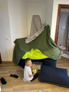 Ze strašidelného domu v Aroně jsme přejeli do apartmánu na druhou stranu ostrova do Orotavy, která leží blízko města Puerto de la Cruz. Ten sice nebyl strašidelný, ale zima v něm byla úplně stejná. Většinu dovolené nám propršelo a nezbývalo nám, než vymýšlet zábavu pro děti ala tvoření sněhových vloček z papírů nebo hraní petangu ze šišek.