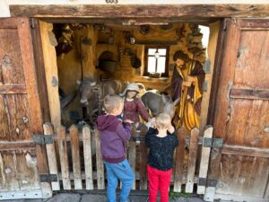 - selfie vedle detí koukajících se na betlém po cestě na vyhlídku