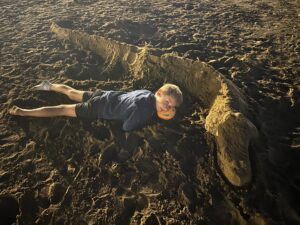 Třešničkou na dortu byl náš poslední den, kdy jsme se před cestou na trajekt zastavili na vyhlídce a pod námi byl asi stometrový sráz. Dali jsme si svačinu a Antonín v nestřežené chvíli strčil celou svoji nohu do odpadní roury a noha se mu tam zasekla. Začal samozřejmě hned řvát a tahat ji ven. Nohu se mi po chvilce podařilo vyndat, ale už bez boty, která spadla za zděné zábradlí vyhlídky do křoví. Mara řekl, že pro ni vleze, z čehož mě polil pot, protože to bylo jedno křoví, padesát čísel hlíny a pak sto metrů dolů. Řekla jsem mu, že určitě ne, že radši oželím jednu dětskou botu než jednoho Maru a šla jsem požádat zahradníky z místního parku, zda mi nepůjčí hrábky. Pan zahradník šel s námi a sám nám botu za pomocí hrábek a lopaty ze křoví vysvobodil, takže všechno dobře dopadlo.