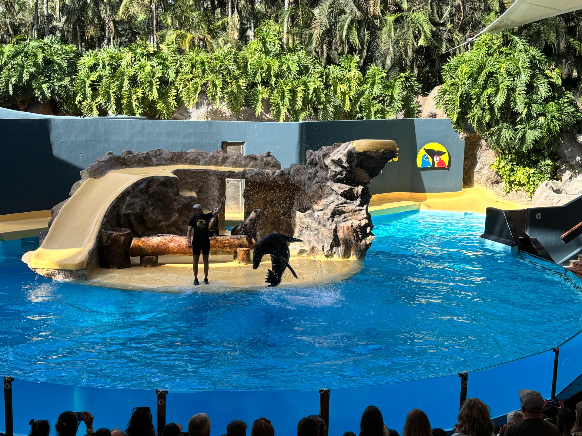 Další den jsme vyrazili do Loro Parque, největšího lákadla Tenerife. Je to veliký zoo park, ve kterém můžete zajít kouknout na show s delfíny, papoušky, lachtany nebo kosatkami. Je to styl ala zachraňte Willyho, ale Loro Parque se snaží prezentovat jako záchranná stanice, která o ty zvířata výborně pečuje, koná dobro všude po světě a rozhodně u ní žádné zvíře nestrádá. Jestli to mu tak opravdu je, netuším, ale promují to dobře.