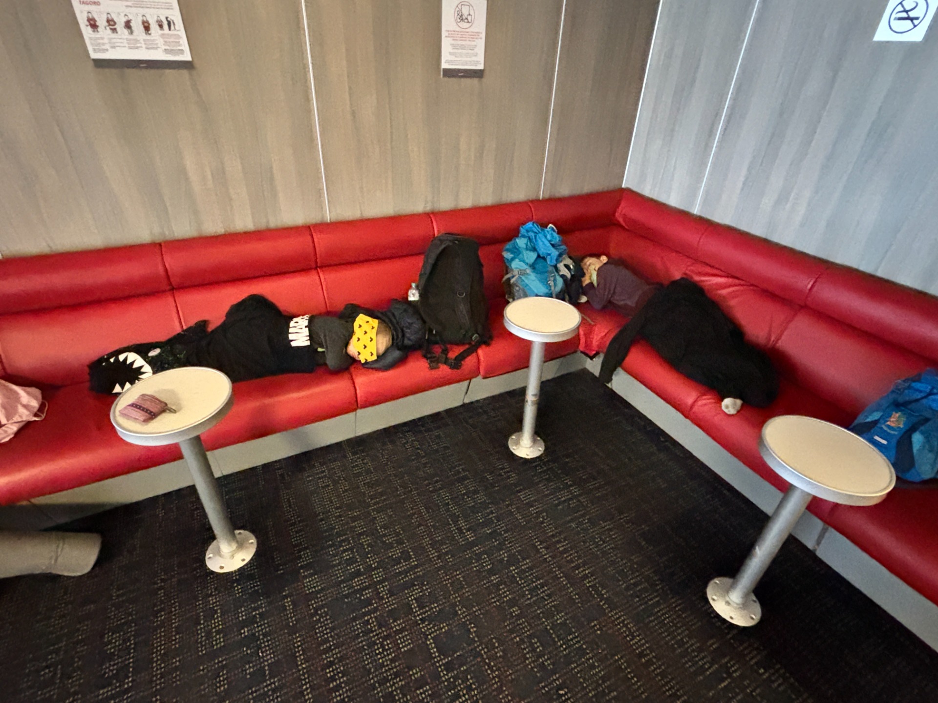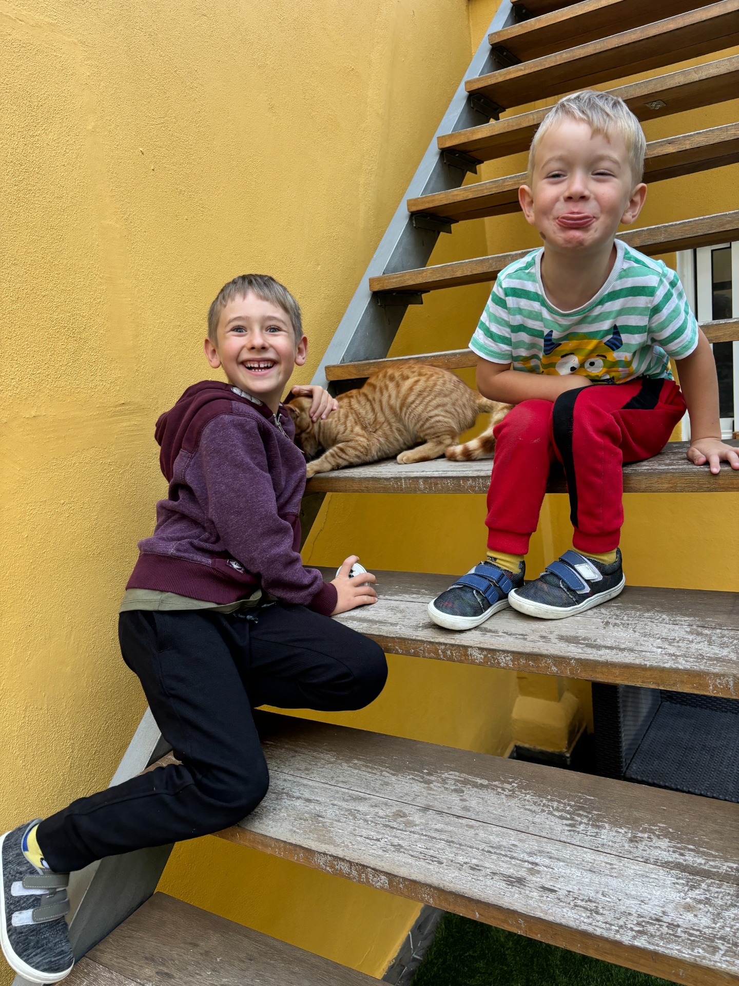 Třešničkou na dortu byl náš poslední den, kdy jsme se před cestou na trajekt zastavili na vyhlídce a pod námi byl asi stometrový sráz. Dali jsme si svačinu a Antonín v nestřežené chvíli strčil celou svoji nohu do odpadní roury a noha se mu tam zasekla. Začal samozřejmě hned řvát a tahat ji ven. Nohu se mi po chvilce podařilo vyndat, ale už bez boty, která spadla za zděné zábradlí vyhlídky do křoví. Mara řekl, že pro ni vleze, z čehož mě polil pot, protože to bylo jedno křoví, padesát čísel hlíny a pak sto metrů dolů. Řekla jsem mu, že určitě ne, že radši oželím jednu dětskou botu než jednoho Maru a šla jsem požádat zahradníky z místního parku, zda mi nepůjčí hrábky. Pan zahradník šel s námi a sám nám botu za pomocí hrábek a lopaty ze křoví vysvobodil, takže všechno dobře dopadlo.
