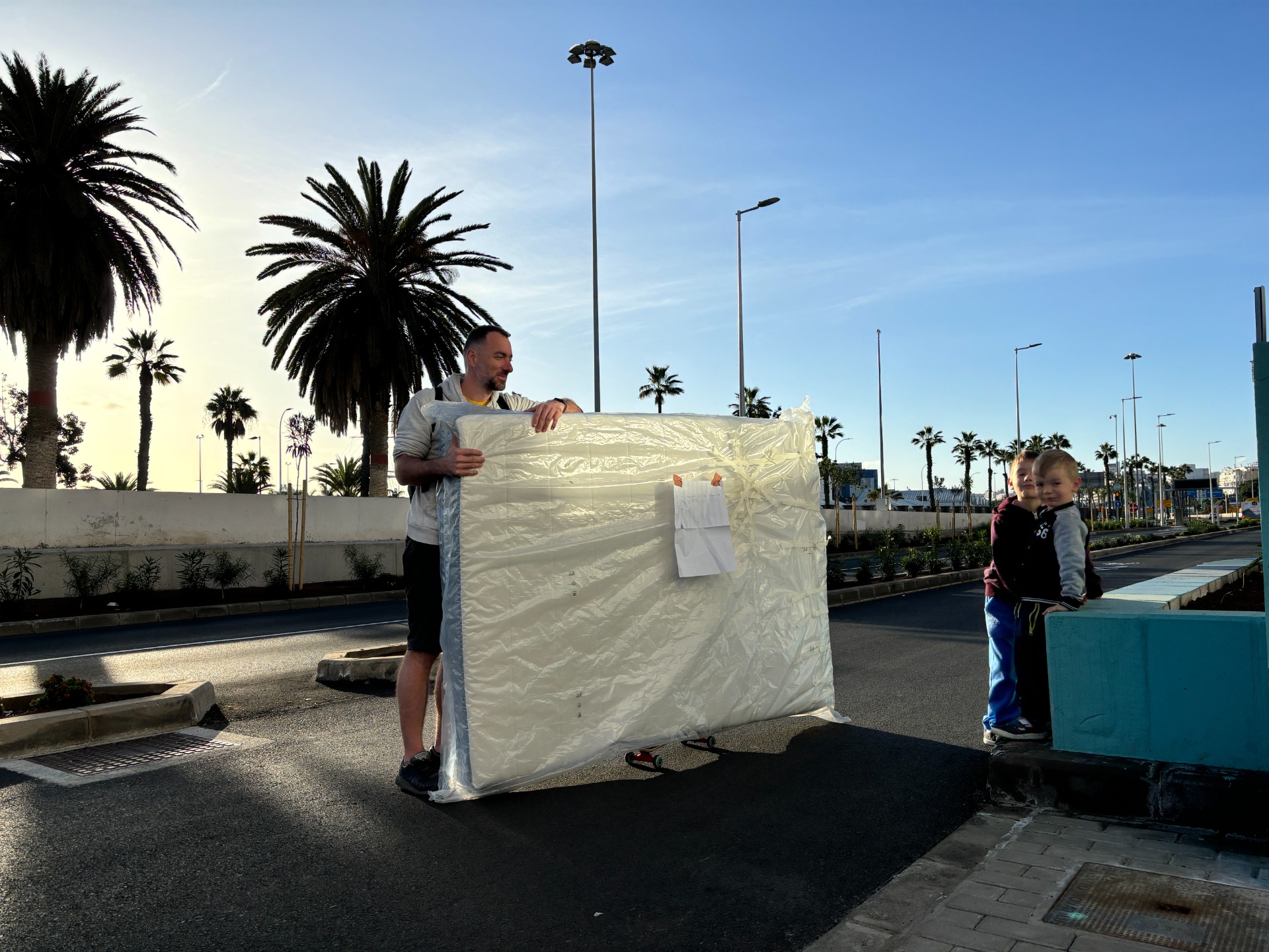 Dnes jsme měli rodinnou misi, a to stěhování velké, třiceti dvou kilové matrace, kterou jsme koupili z druhé ruky a potřebovali ji dopravit asi kilometr a půl k nám na apartmán. Mara měl brilantní nápad vzít skateboard, dát ho pod matraci a vést ji po silnici v pruhu pro cyklisty. Když to tak čtu, zní to jako bláznovství, ale kupodivu to fungovalo naprosto bezvadně a pomocí jednoho skateboardu (který mimochodem chtěl Mara vyhodit, protože ho nikdo nepoužívá, zaplať pánbůh za moje syslí sklony) celé stěhování proběhlo naprosto hladce a bez většího úsilí.