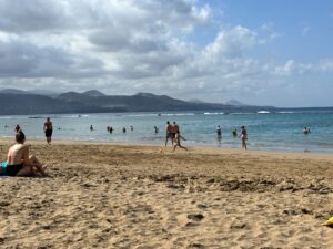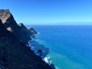 První zastávka bylo Agaete. Příjemné přímořské městečko asi půl hodiny od Las Palmas. Chtěl mě vzít do své oblíbené kavárny, která měla, bohužel, ten den zavřeno, ale naštěstí Agaete netrpí nedostatkem kaváren, takže jsme brzy objevili průměrnější náhradu. Podívali jsme se na místní pláž, u které i v silném větru a pocitové teplotě cca 15 stupňů leželo množství postarších casanovů v plavkách. Marek dospěl k závěru, že tam, dle jejich vzezření, takto leží celoročně.