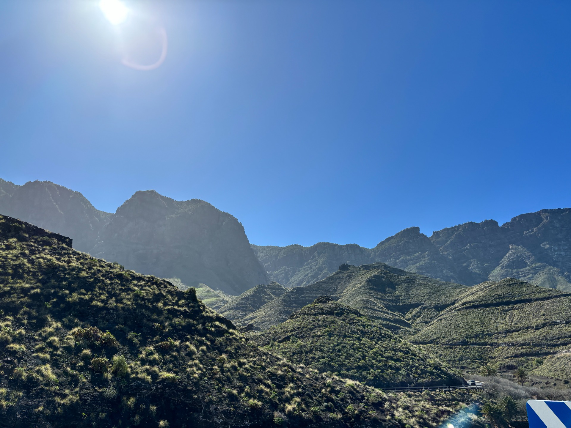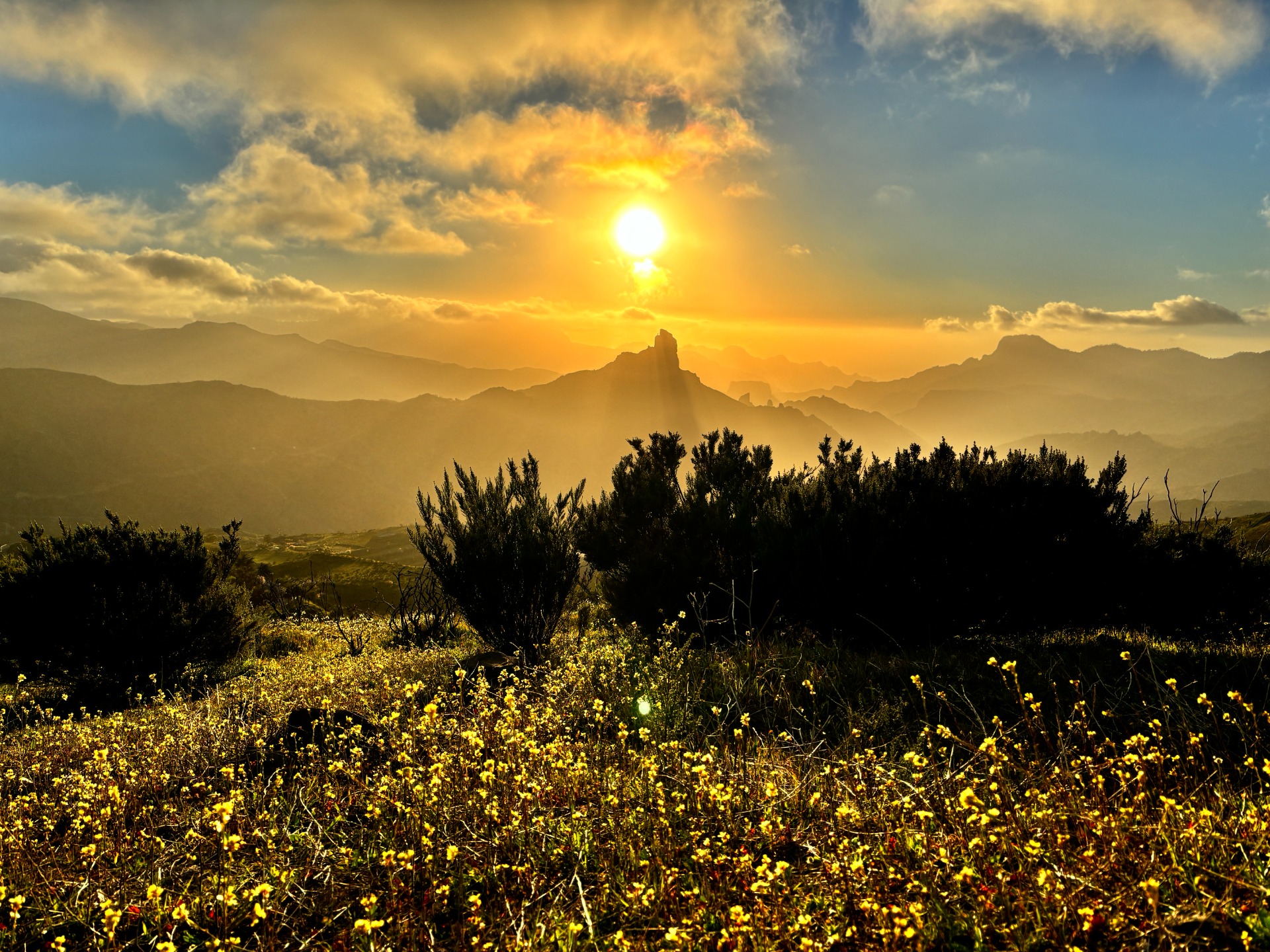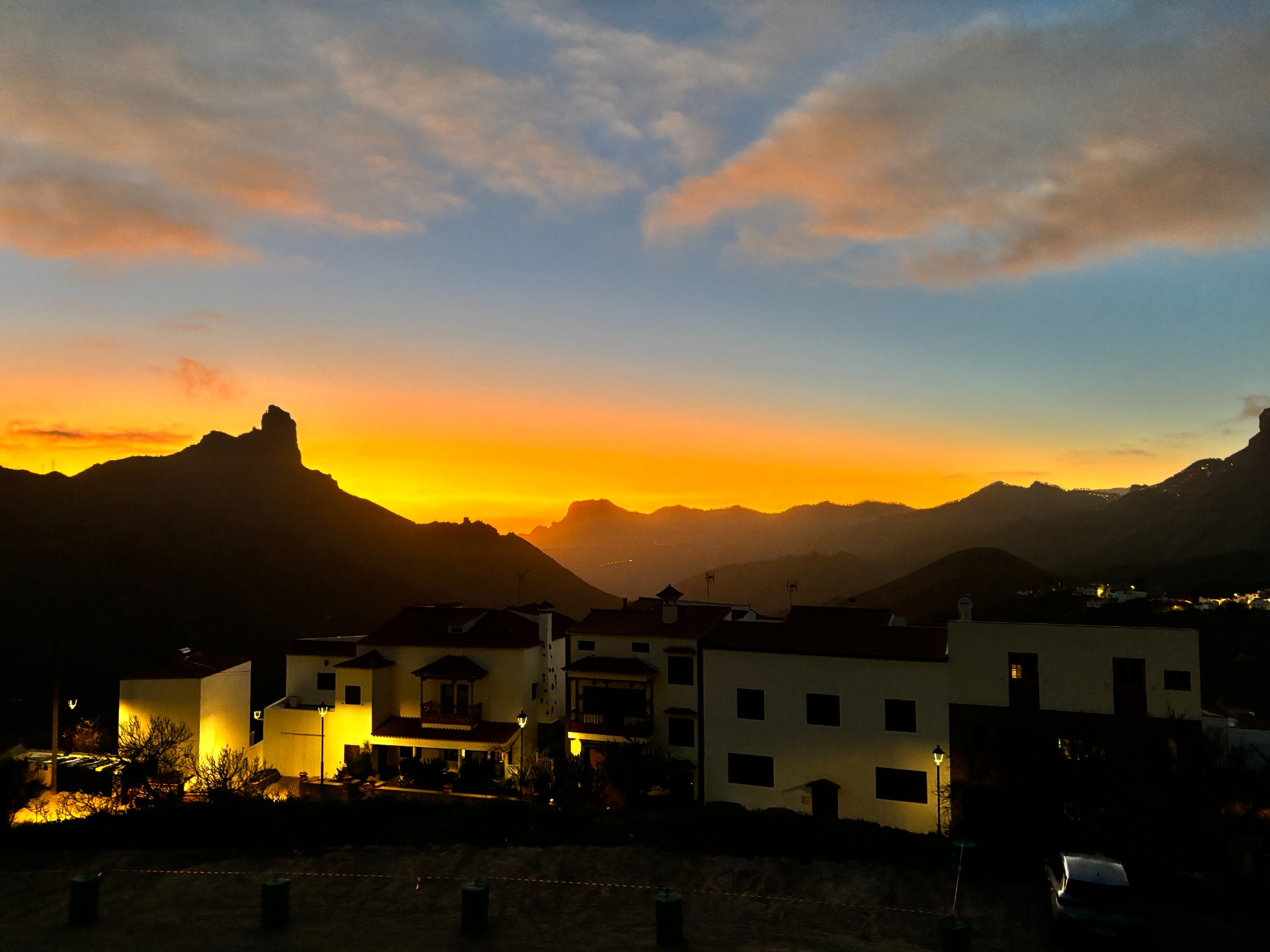 Následovala cesta na úplný jih ostrova do Puerto de Mogán na moji oblíbenou paellu. V Mogánu jsme se chvíli pováleli na pláži, dali si zmrzlinu a putovali dál na pár pitoreskních vyhlídek. K večeru jsme dorazili do malebného horského městečka Tejeda, nakoupili si zákusky a vyjeli na blízký kopec, kde Marek objevil úžasné místo s nepopsatelných výhledem. Byli jsme v docela velké nadmořské výšce, takže okolo nás rostla normální tráva, kvetly květiny a celé okolí vypadalo jak pozadí z Teletubbies. Následoval neskutečný západ slunce. Byla to taková romantika, až z toho přecházel zrak. Abych tu romantiku pořádně podpořila, vytáhla jsem chleba se sekanou, hořčicí a kyselýma okurkama a nakázala Marovi, že to musíme sníst, jinak se to zkazí. Přece to nevyhodím, když se s tím máma vaří, já to chystám a celý den tahám s sebou, ne? Po sekačce jsme si dali zákusky a užívali si okolní idylku. Jen, co zapadlo slunce, snížila se teplota vzduchu tak o 15 stupňů, takže jsme se honem dodrkotali do Tejedy na apartmán, pustili všechny přímotopy a rozmrzali v posteli u seriálu. No, den jako malovaný.