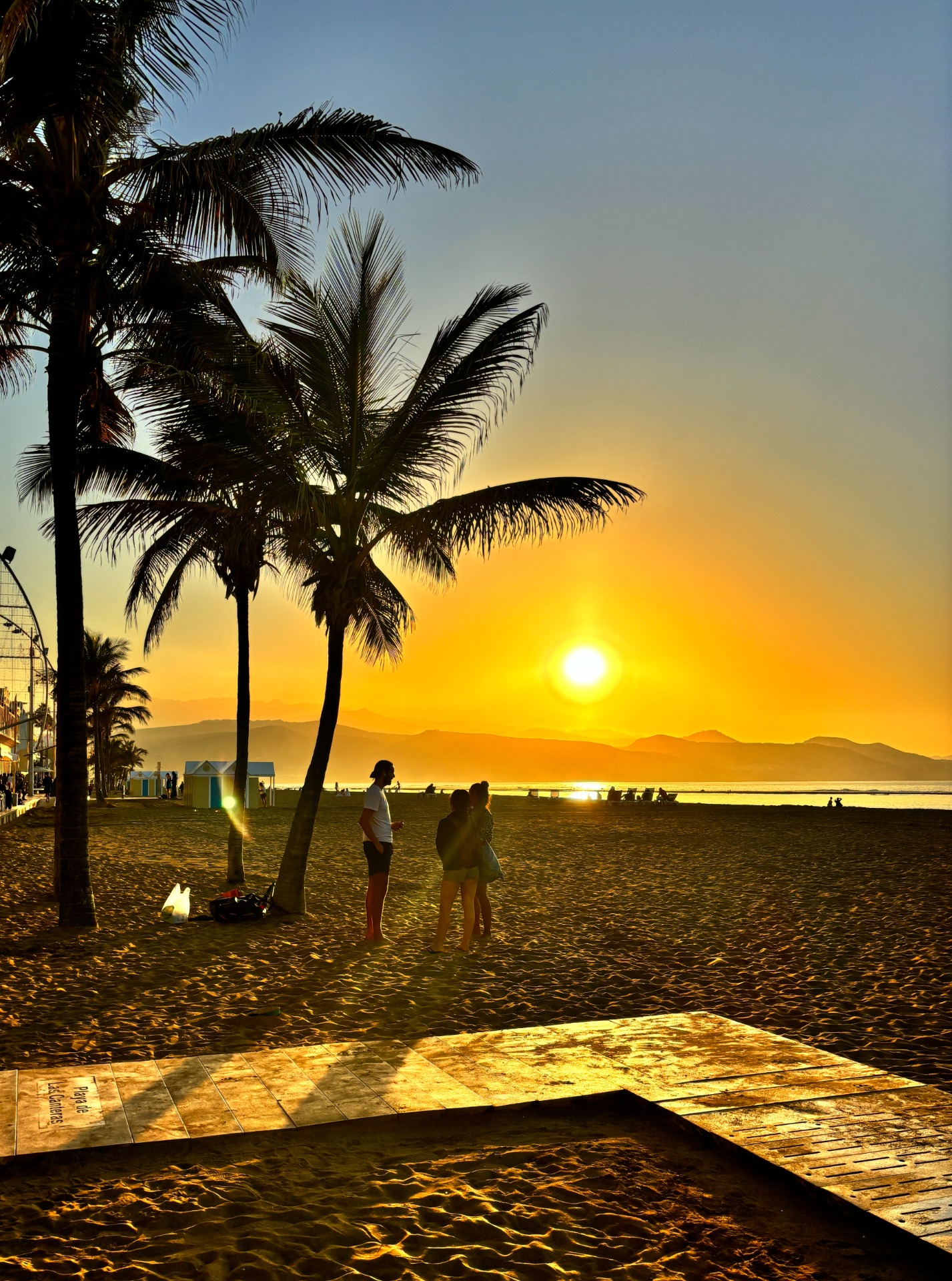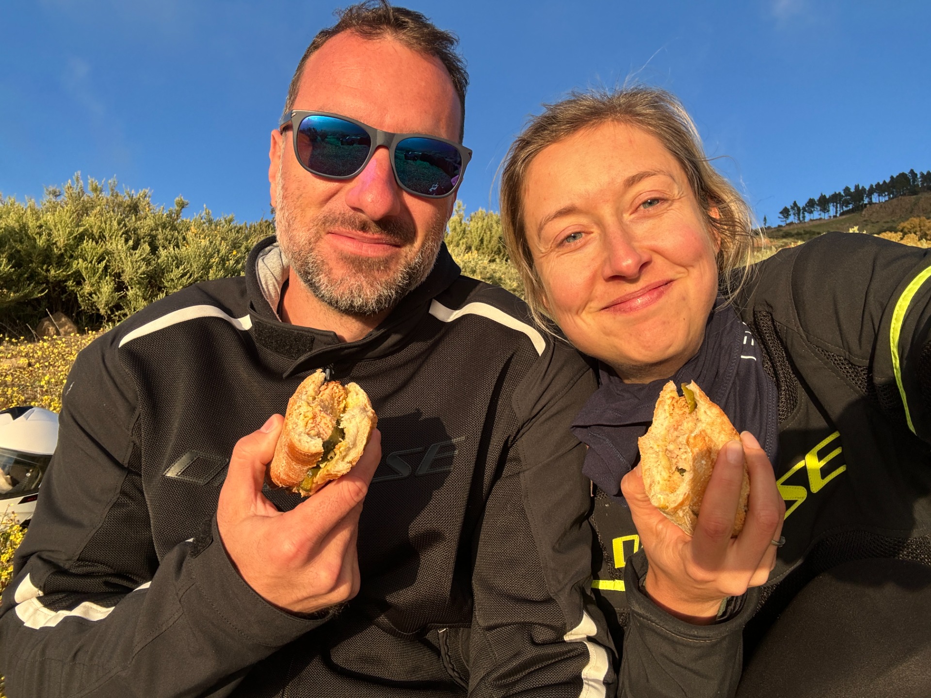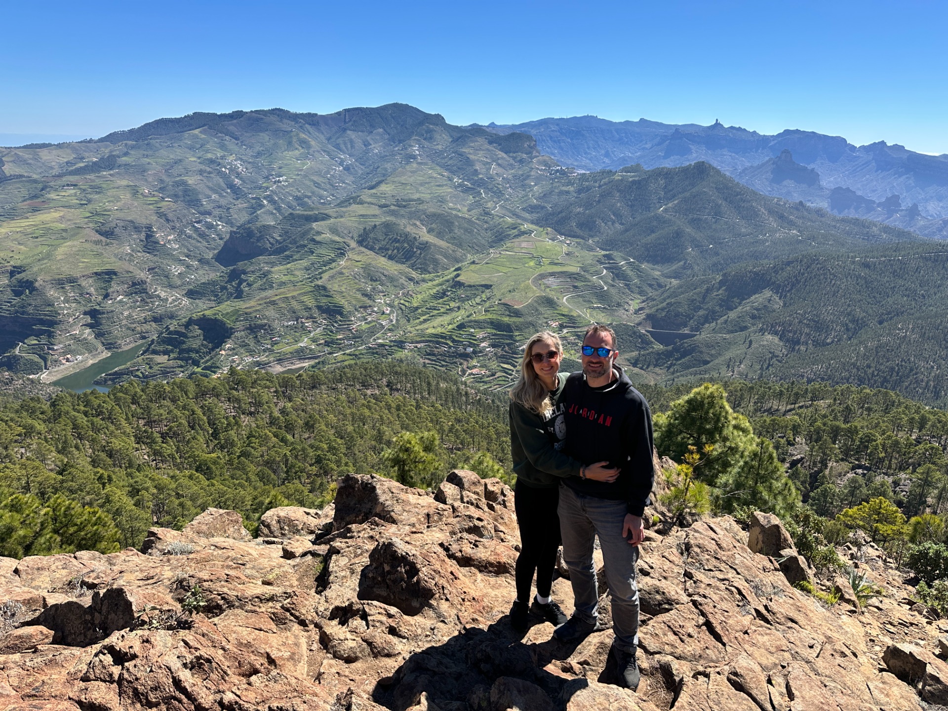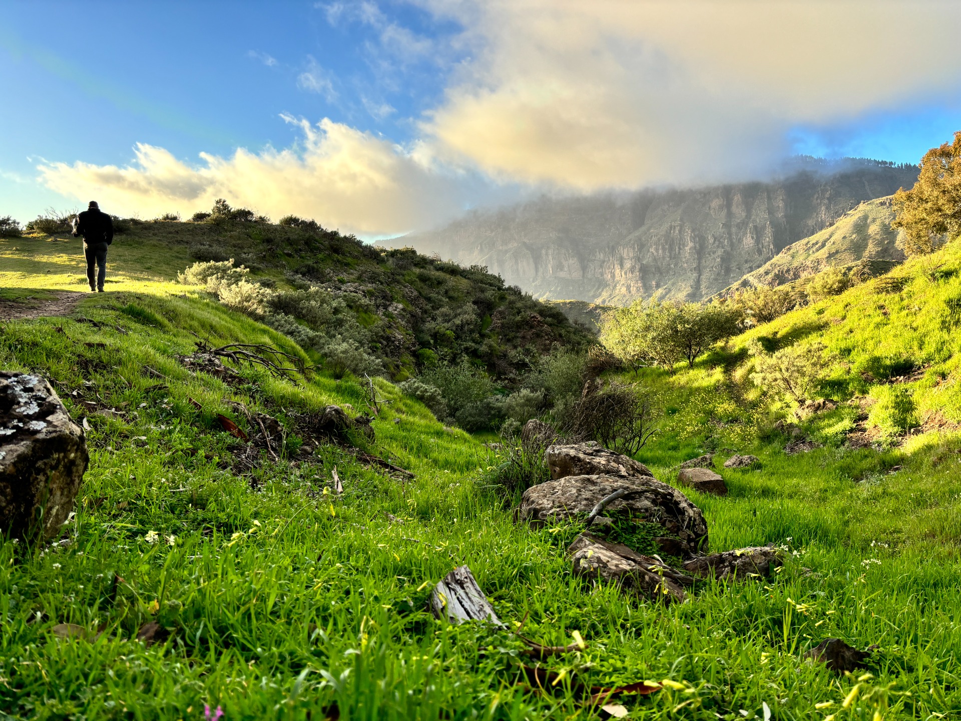 Následovala cesta na úplný jih ostrova do Puerto de Mogán na moji oblíbenou paellu. V Mogánu jsme se chvíli pováleli na pláži, dali si zmrzlinu a putovali dál na pár pitoreskních vyhlídek. K večeru jsme dorazili do malebného horského městečka Tejeda, nakoupili si zákusky a vyjeli na blízký kopec, kde Marek objevil úžasné místo s nepopsatelných výhledem. Byli jsme v docela velké nadmořské výšce, takže okolo nás rostla normální tráva, kvetly květiny a celé okolí vypadalo jak pozadí z Teletubbies. Následoval neskutečný západ slunce. Byla to taková romantika, až z toho přecházel zrak. Abych tu romantiku pořádně podpořila, vytáhla jsem chleba se sekanou, hořčicí a kyselýma okurkama a nakázala Marovi, že to musíme sníst, jinak se to zkazí. Přece to nevyhodím, když se s tím máma vaří, já to chystám a celý den tahám s sebou, ne? Po sekačce jsme si dali zákusky a užívali si okolní idylku. Jen, co zapadlo slunce, snížila se teplota vzduchu tak o 15 stupňů, takže jsme se honem dodrkotali do Tejedy na apartmán, pustili všechny přímotopy a rozmrzali v posteli u seriálu. No, den jako malovaný.