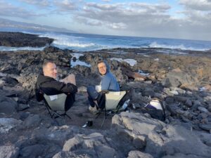 Marek mi chtěl udělat radost a naplánoval to opravdu krásně. Po příletu našel vyhlášenou kavárnu, kam jsme zašli na kafe a brunch. Po dobrém jídle jsme zamířili na Teide, nejvyšší horu Španělska. Lístky na lanovku jsou často vyprodané a kupují se dlouho dopředu. Nahoře jsme si obešli krátkou trasu, nasáli trochu syrovodíku a vydali se dolů. Je to jedno z největších turistických lákadel, ale z mého pohledu – pokud toto místo vynecháte, o nic moc nepřijdete.