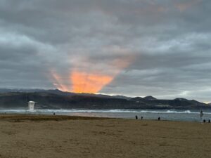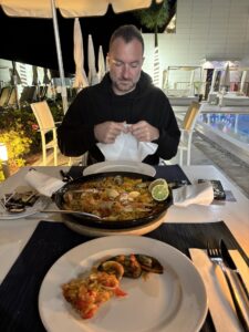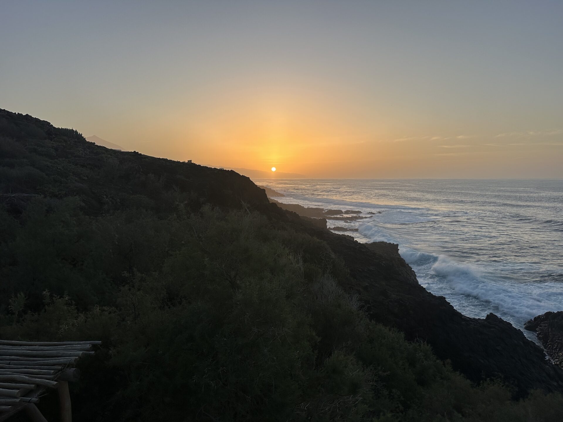 Odpoledne jsme se přesunuli na hotel na jihozápad ostrova do města Puerto de Santiago. Toto místo je známé svými obřími útesy, které padají kolmo do Atlantiku. Jmenují se Los Gigantes. S výhledem na tyhle čedičové skály jsme si dali na večeři paellu a užívali si krásný výhled a romantiku
