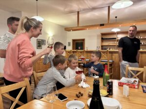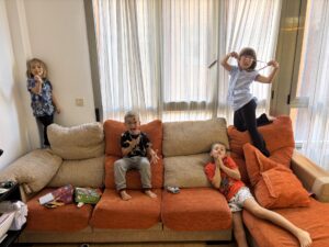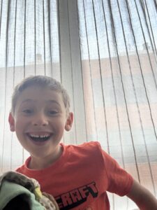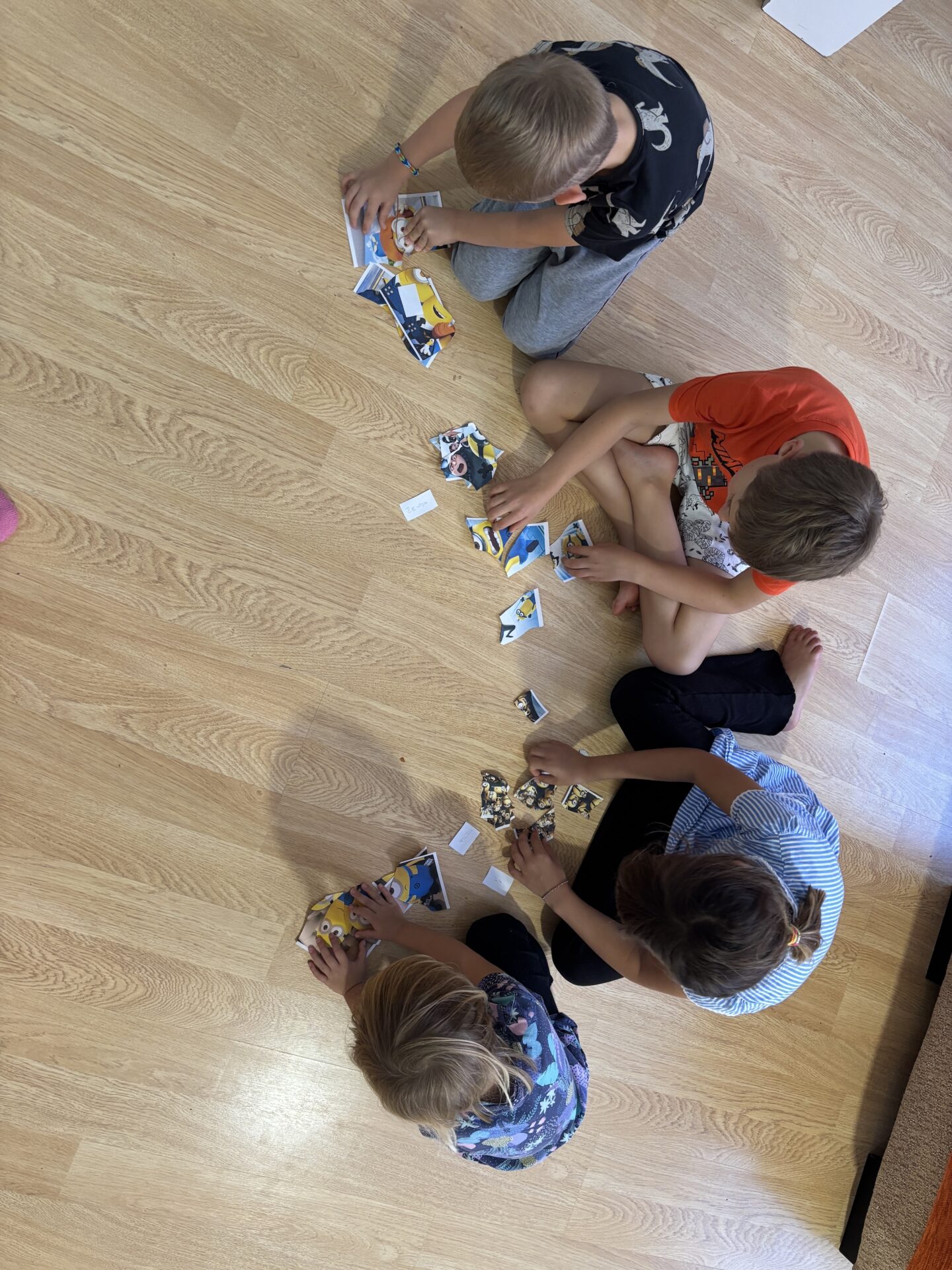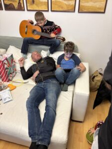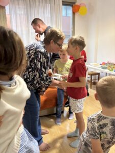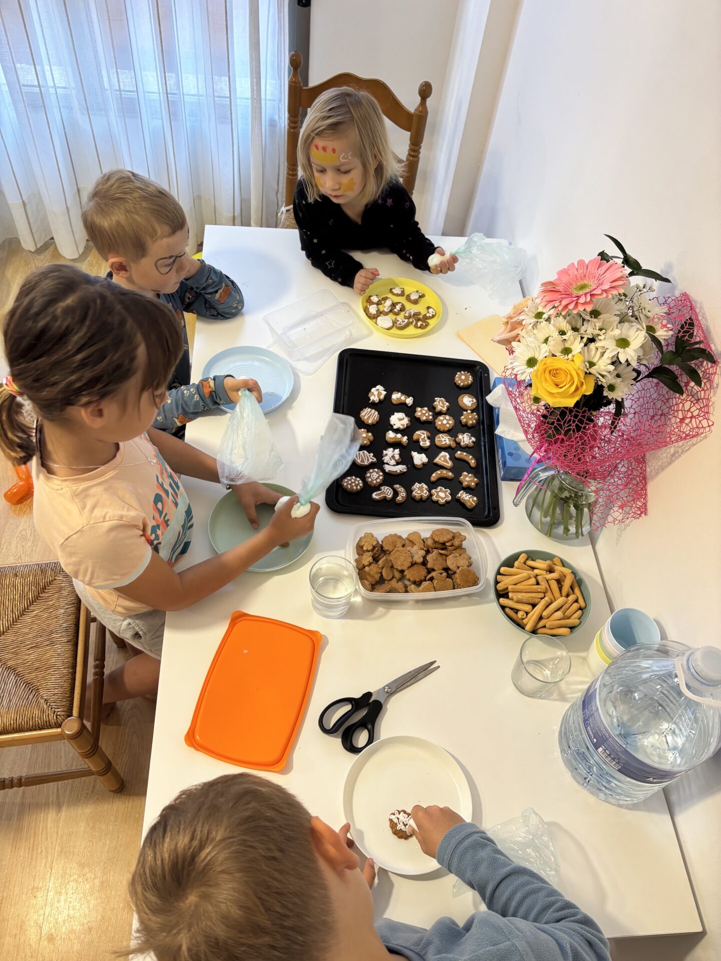 Čenda nám tu oslavil sedmé narozeniny. Kvůli počasí jsme museli přesunout oslavu k nám do bytu. Měli jsme domluveného klauna, který měl velmi ztížené podmínky – musel všechny svoje věci nacpat do obýváku a dělat show pro osm dětí na pár metrech. Řeknu vám, že jezdit na jednokolce a u toho žonglovat v limitované výšce 2,6 m není žádná sranda. A vůbec to není sranda, když kolem vás běhá osm neposlušných mláďat, která nevydrží deset minut sedět v klidu na gauči. No, měl to fakt odedřené, chudák. Každopádně děti si to užily. Meda to měla i s přespávačkou a další den jsem pořádala olympiádu a zdobení perníků. Za to mám kladné rodičovské body. 🙂