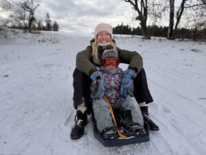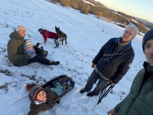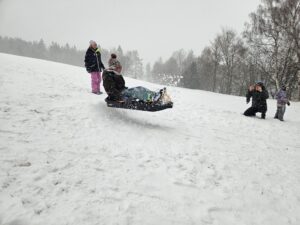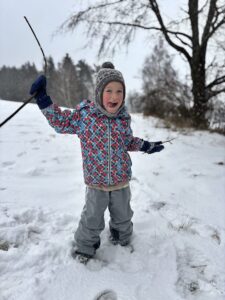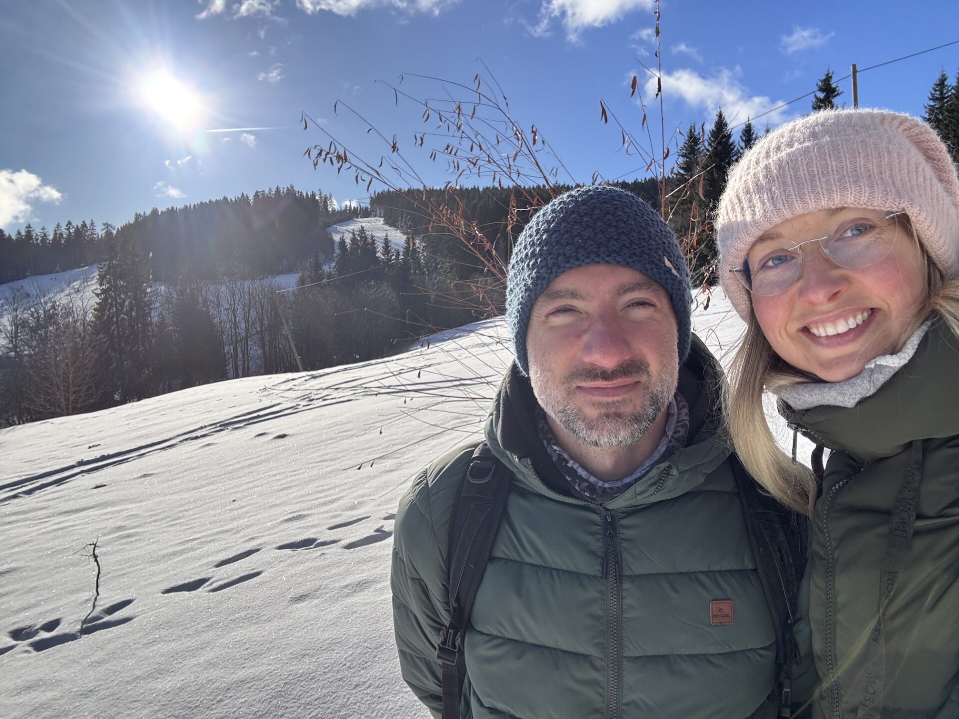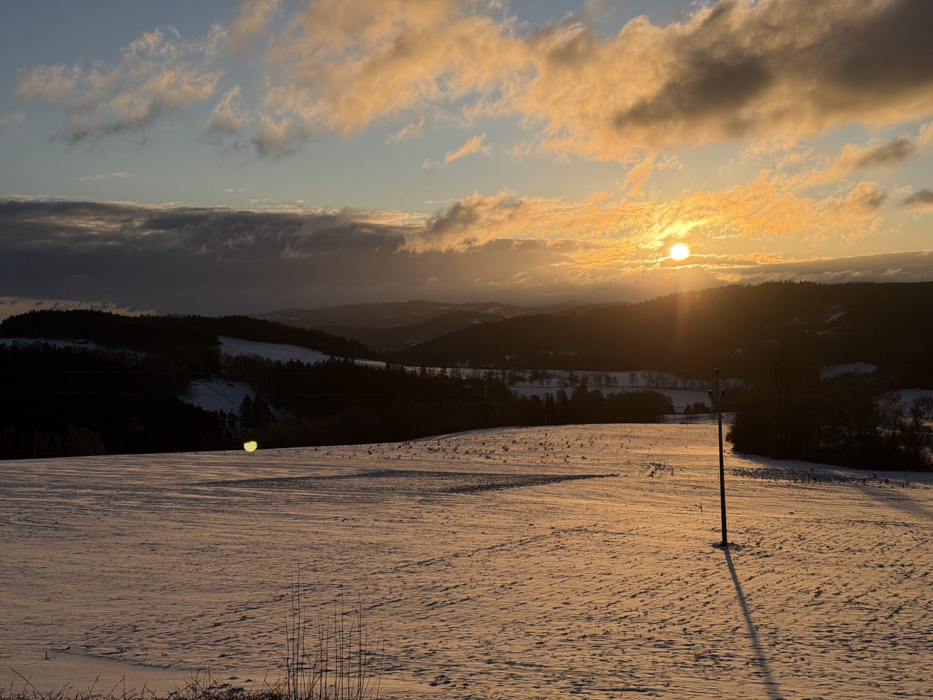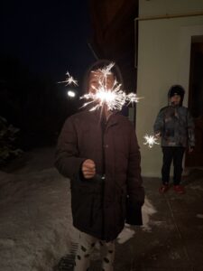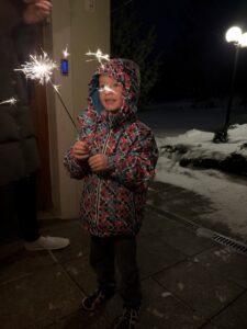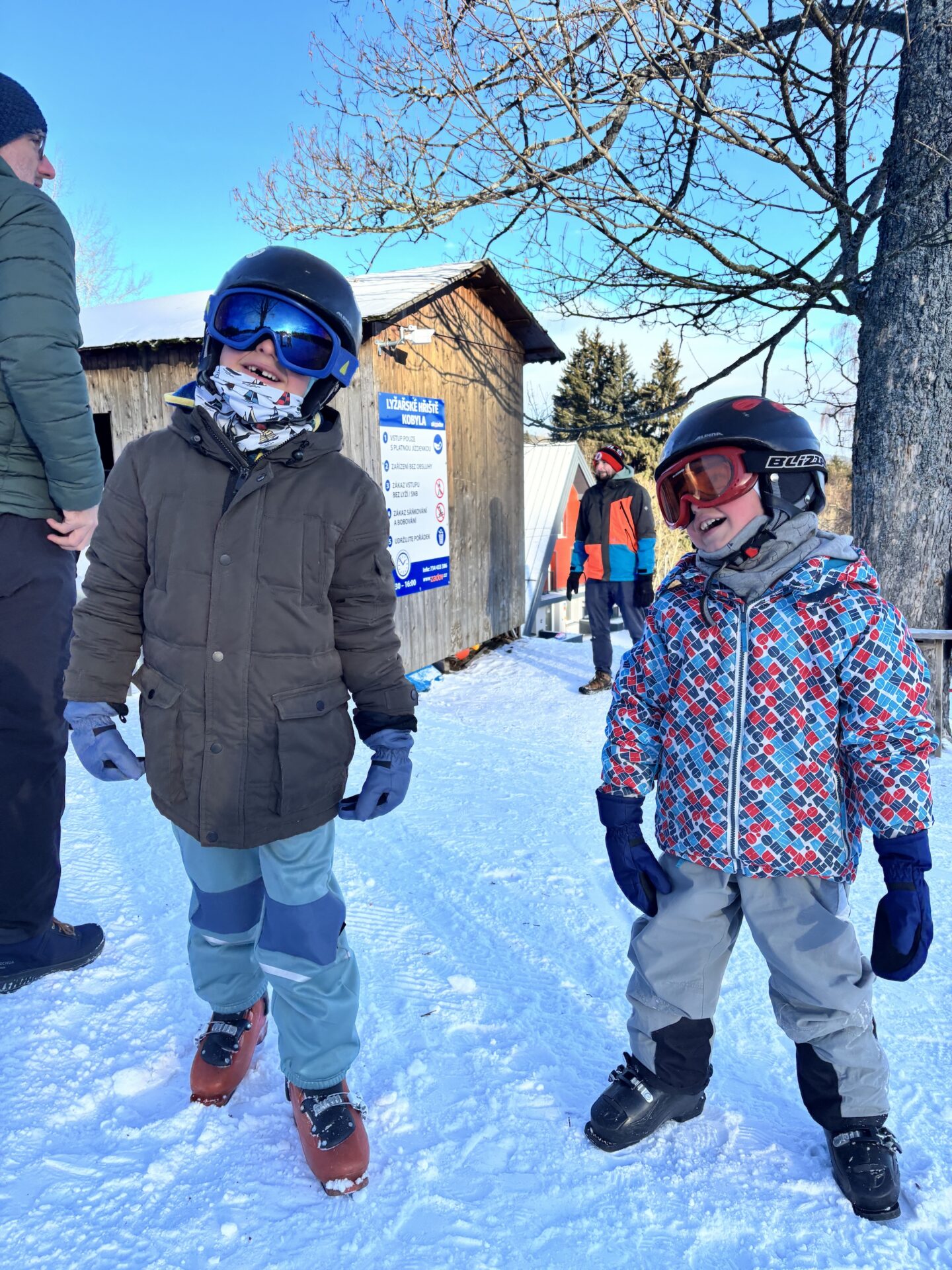 Na Silvestra jsme jeli na Šumavu, kde jsme si pronajali chatu s Marovými kamarády a mohli se potkat i s Markovou mámou. Kluky jsme poprvé postavili na lyže. Bylo to moc fajn, protože postavení na lyže vypadalo tak, že jsme je dali do lyžařské školky a šli si dát na svahu bombardino.